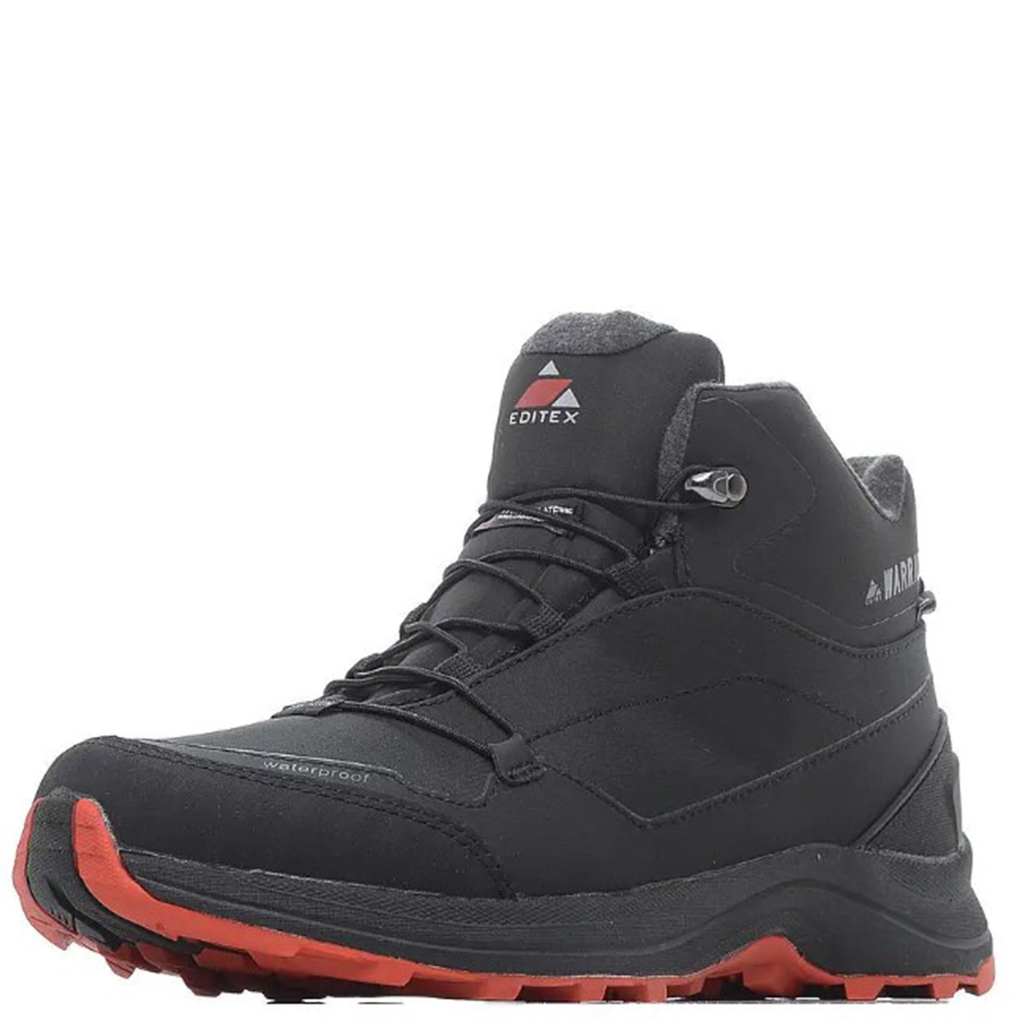 Благодаря современным материалам и качественной сборке ботинки Editex Warrior станут отличным выбором, а стильный дизайн позволит носить обувь не только в походах, но и в повседневной жизни. Использование синтетических материалов для верхнего слоя позволяет ботинкам выдерживать высокие механические нагрузки, а прошивка прочной строчкой позволяет изделию прослужить не один сезон экстремального ношения. Внутренний слой обуви оборудован мембраной, выполненной по технологии Waterproof Windproof Breathable (WWB), наделяя изделие высокими ветро- и влагозащитными качествами за счёт наличия микропор, которые также обеспечивают хорошую степень паропроницаемости и отводят лишнюю влагу от кожи, поддерживая комфортный микроклимат. Использование полиэфирных микроволокон позволяют утеплителю Thinsulate эффективно термоизолировать ноги владельца от внешних факторов погоды, сохраняя тёплый воздух внутри пор утеплителя. Дополнительная защита пяток и носок обеспечивается за счёт резиновых вставок, повышая устойчивость изделия к механическим повреждениям. Уникальный состав стелек OrthoLite благодаря использованию противомикробной обработки защищает от образования микробов и неприятного запаха, что в сочетании с вентиляцией стопы ног позволяет поддерживать комфорт при ношении. Промежуточная подошва EVA обеспечивает равномерное распределение нагрузки при ходьбе. Основная подошва Ultra Slip Protection (USP) за счёт использования износостойкой резины, выдерживающая значительные температурные перепады, сохраняет надёжное сцепление даже в суровую погоду. Прочная шнуровка обеспечивает плотную посадку на ноге даже в самых сложных условиях, а дополнительная функциональная петля сзади придаст удобства при надевании обуви. Высокая износостойкость достигается благодаря качественным материалам, что будет полезно не только при длительном ношении в походах, но и при частой стирке. Ботинки обладают стильным чёрным дизайном с оранжевыми вставками на подошве, позволяя сочетаться с повседневной одеждой.Характеристики: